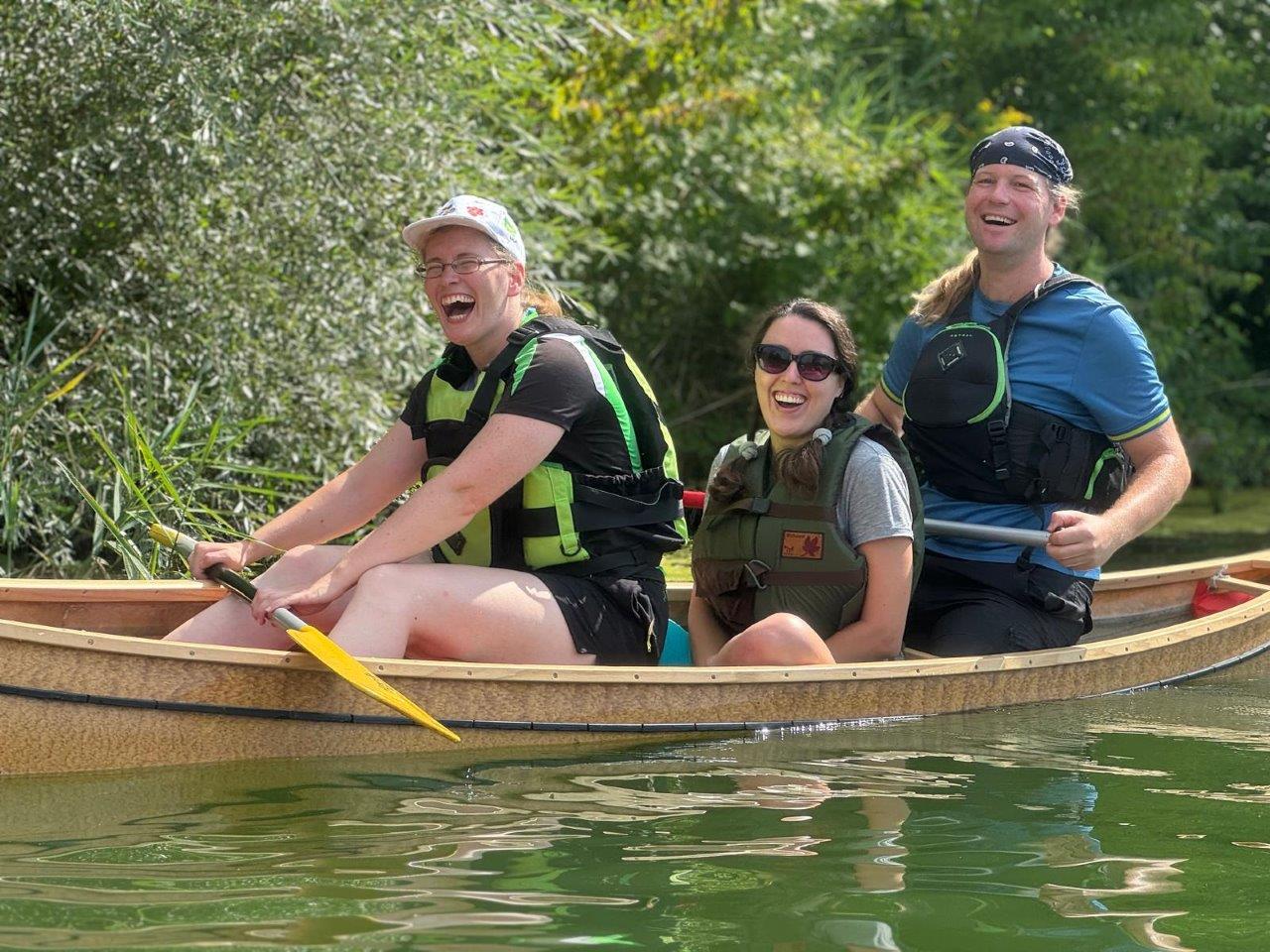 In mehreren unterschiedlich großen Familiencanadiern, einem Kajak mit zwei Sitzplätzen und einem einer-Kinderkajak wagten sich die Protagonist*innen aufs Wasser, um ihre teils ersten Erfahrungen zu machen. Durch die fachliche Anleitung des Trainers konnten die Teilnehmenden die zweieinhalb Stunden nutzen, um den Grundschlag und einfache Steuerschläge zu erlernen, mit denen das Boot dort hin fährt, wo man es haben möchte. Damit das Angebot keine Ehekrisen verursacht, wurde auch die Zusammenarbeit von Vorder- und Hintermann bzw. -frau erklärt und vermittelt, was in einem schwimmenden Fahrzeug Kooperation, gegenseitiges Vertrauen und die Fähigkeit zu verzeihen erfordert.