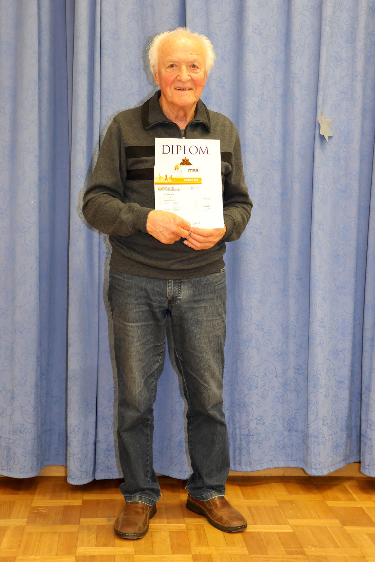 Das Sportabzeichen-Team freute sich besonders über 51 Kandidatinnen und Kandidaten, die zum ersten Mal auf den Platz getreten waren. Das lag auch daran, dass 2025 die Herausforderung „Sportabzeichen“ erneut im Rahmen des Ferienprogramms des Stadtjugendrings angeboten worden war. 33 Kinder und Jugendlichen standen eine Reihe von Senioren gegenüber, die bereits als hartnäckige Wiederholungstäter bekannt sind – viele davon schon mehr als 30 Mal. Eine besondere Leistung erbrachte Helmut Scheuchel, welcher mit stolzen 92 Jahren zum 45 Mal das Deutsche Sportabzeichen absolvierte. Außerdem ist er der älteste Mann in Deutschland, der das norwegische Sportabzeichen in Empfang nehmen kann.